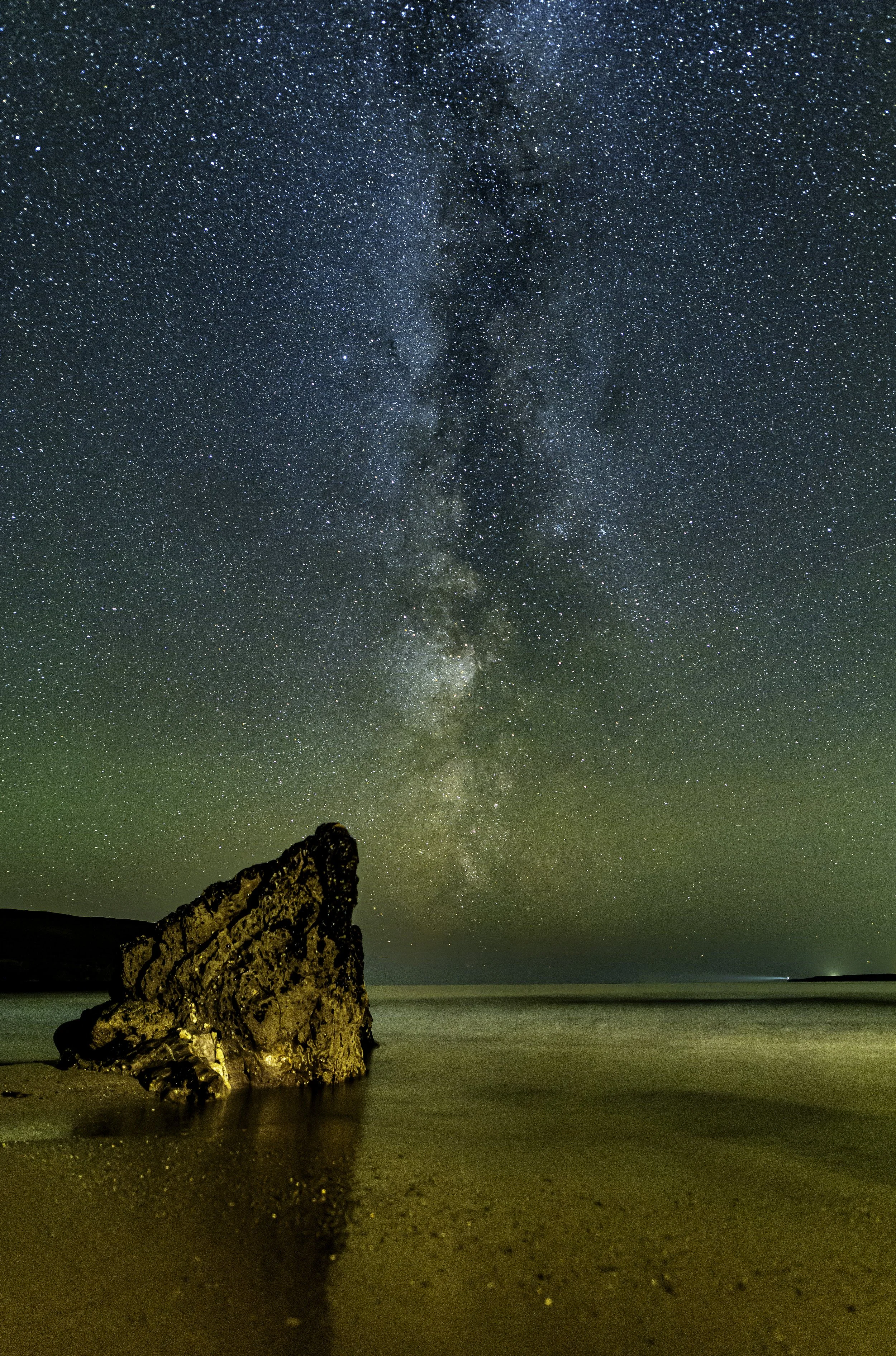 Dark, winding dust lanes that appear like rivers of shadow against the bright background of stars. Dense regions of interstellar dust and gas obscure the light from stars behind them, creating captivating patterns across the Milky Way. The brightness is a result of the combined light from countless stars within our galaxy. When you look at the Milky Way, you're actually observing the disk of our own galaxy from within. The reddish areas you see are regions of hydrogen gas that are emitting light due to the presence of hot, young stars. These are nebulae, and some famous ones you might be capturing are the Lagoon Nebula and the Pelican Nebula. In the Northern Hemisphere, you can often spot the Cygnus arm of the Milky Way, which appears as a dense region of stars and nebulae near the constellation Cygnus (the Swan). Additionally, the bright center of the Milky Way, which houses the supermassive black hole Sagittarius A, is a prominent feature in the southern sky.